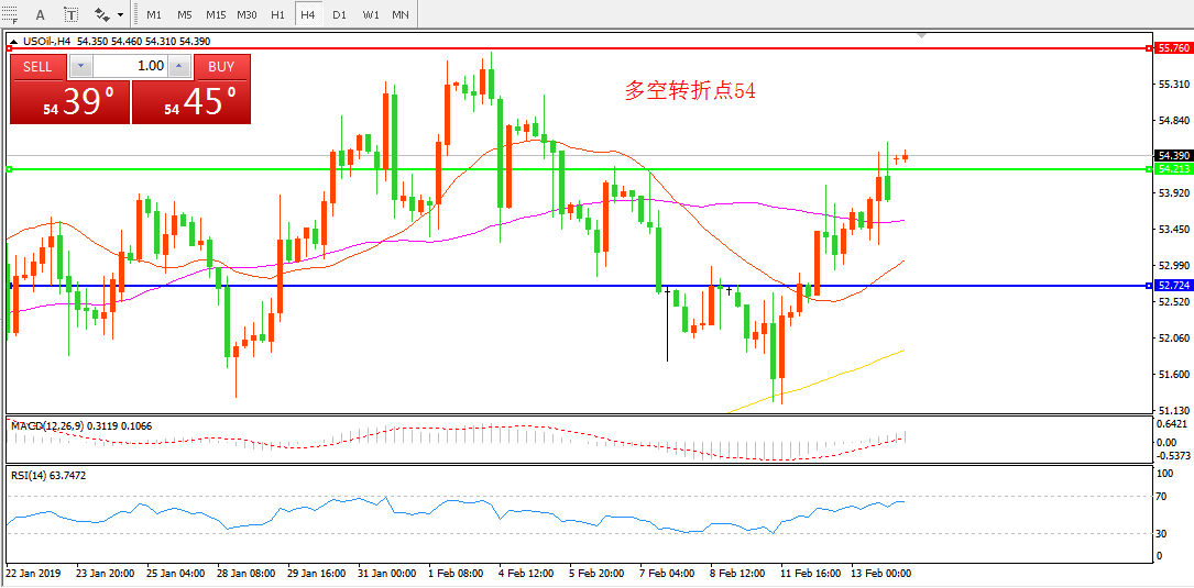 交易策略:在54.00之上看涨,目标57.00 60.00