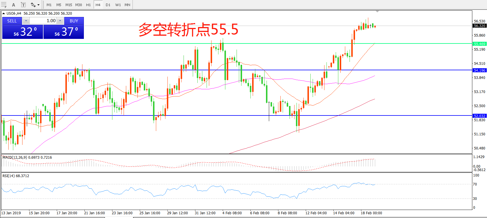 交易策略:在55.50 之上看涨,目标58.00 62.00