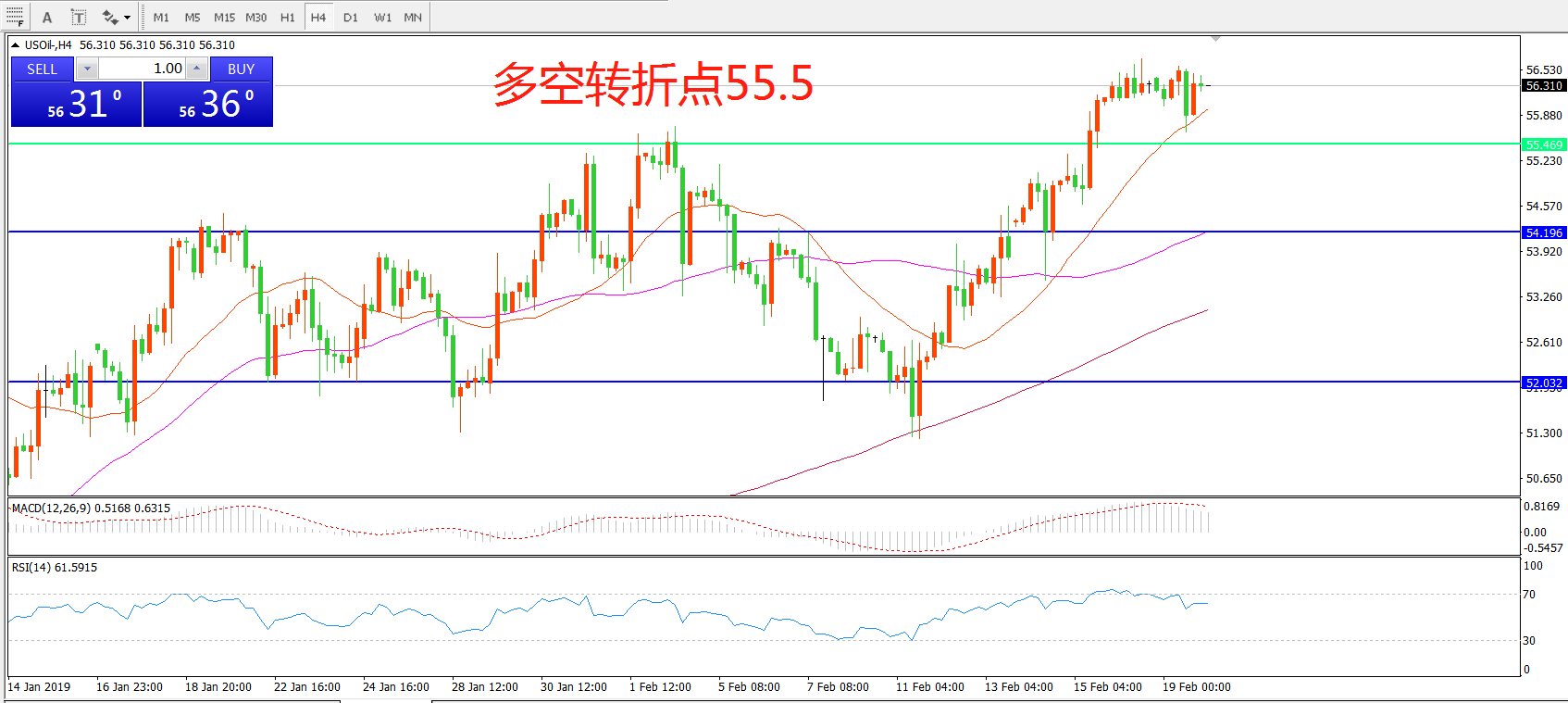 交易策略:在55.50 之上看涨,目标58.00 62.00