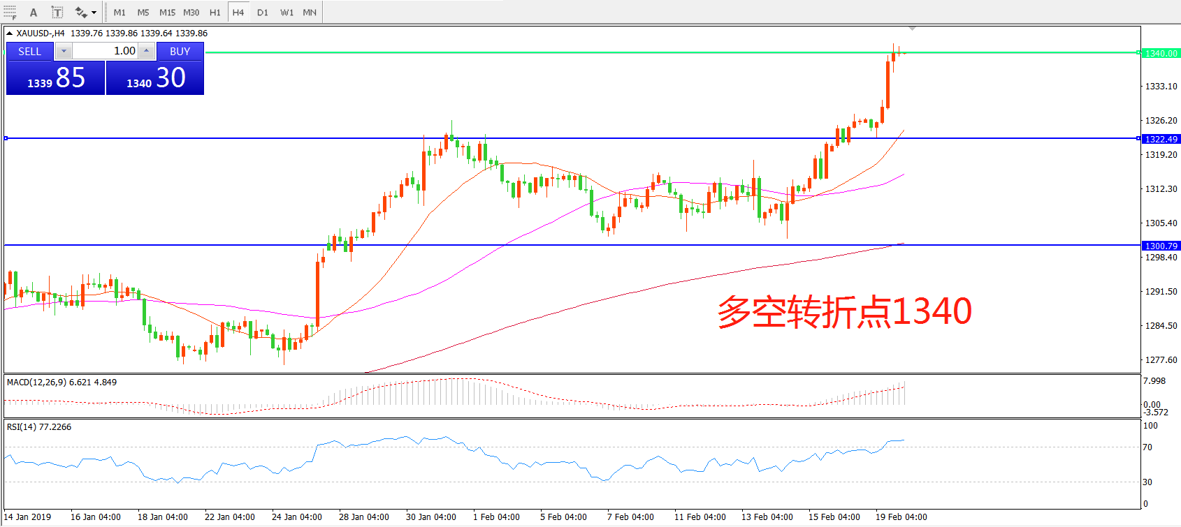 多空转折点:1340.00