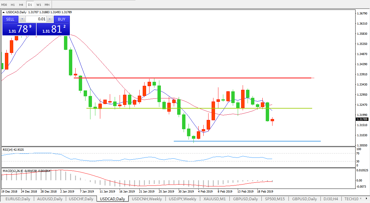 基本面分析:美国2月15日当周API原油库存录得增加126万桶,小于预期的增加308万桶,汽油库存降幅大于预期,美布两油短线上扬。美元兑加元跌至两周新低,触及1.3173,下破100日移动均线。