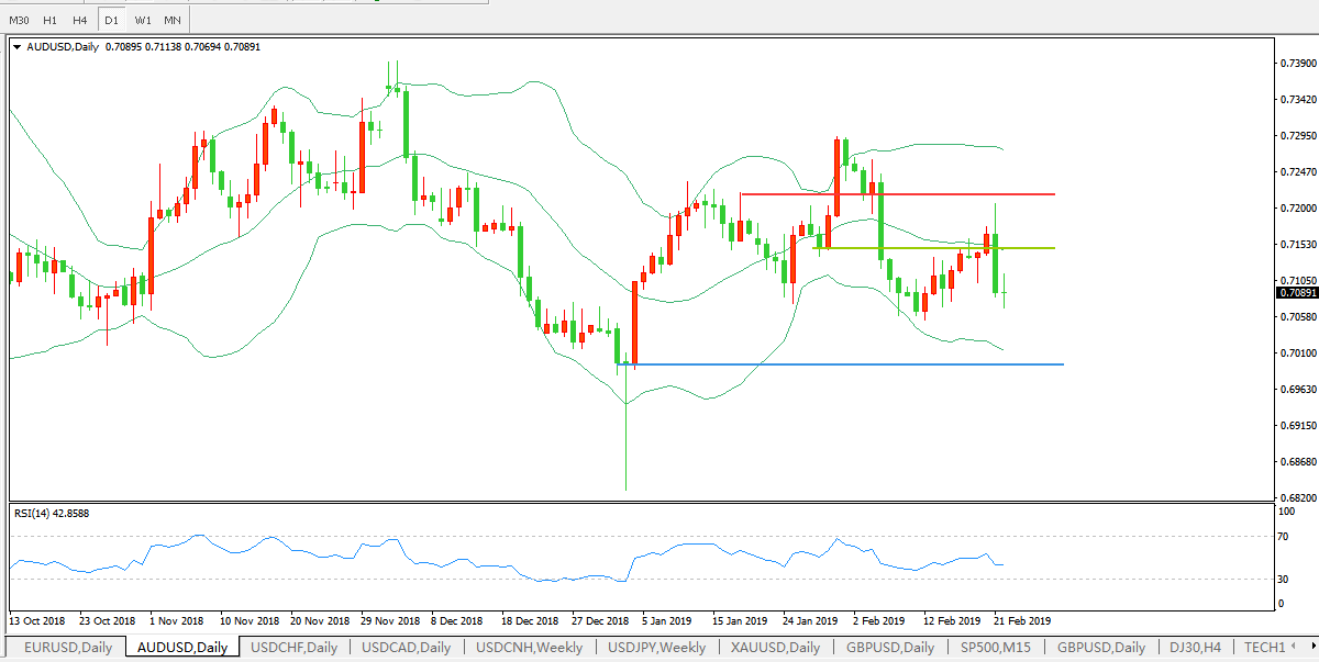 交易策略:在0.7145之下,看跌,目标价位为0.7050,然后为0.6990。