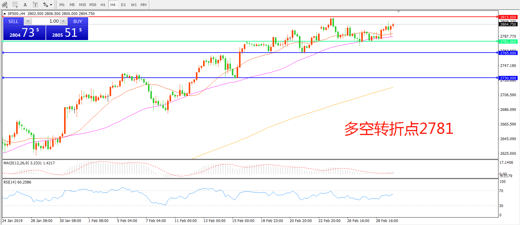 交易策略:在2781之上看涨,目标2815 2860