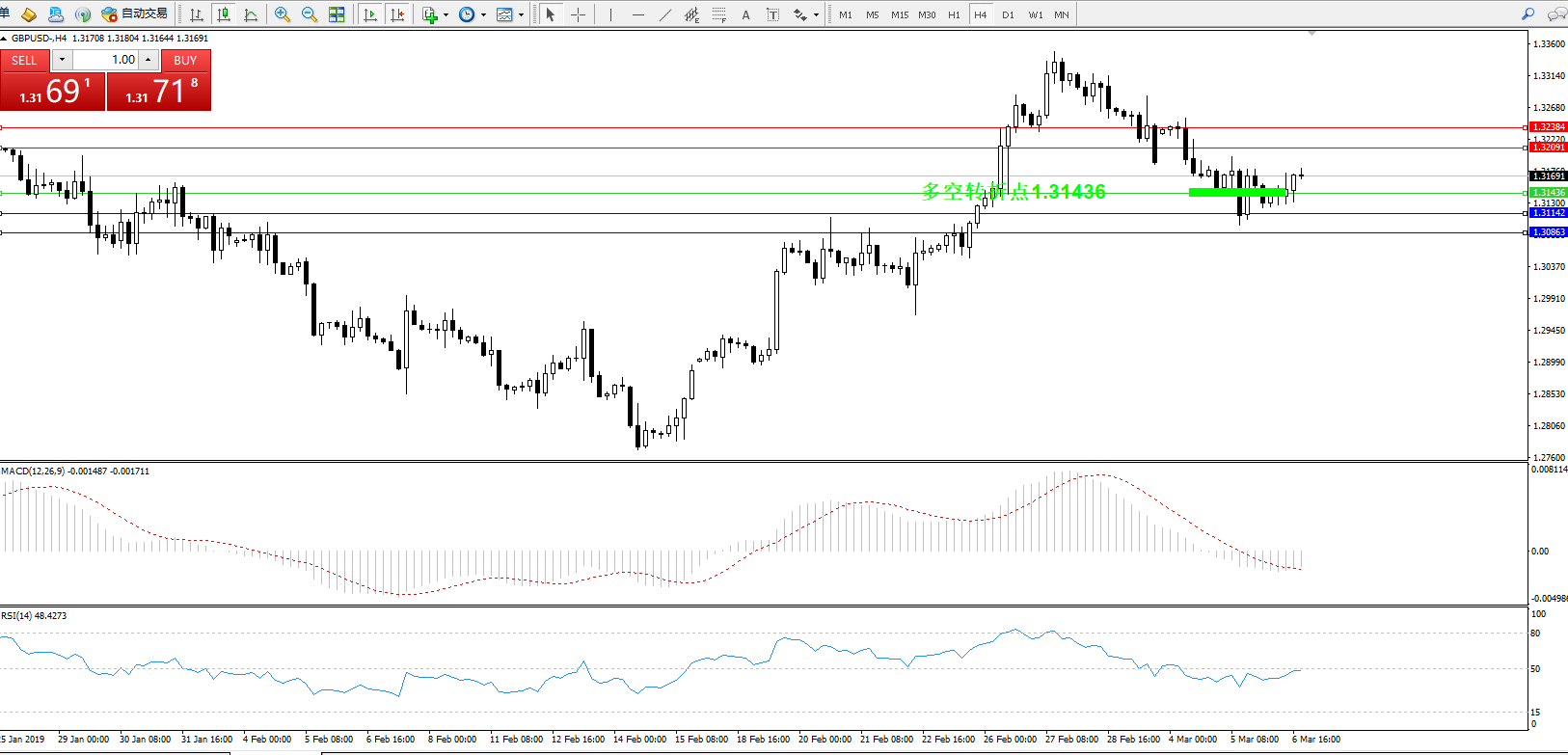 交易策略:1.31436上方看涨,目标1.32091、1.32384