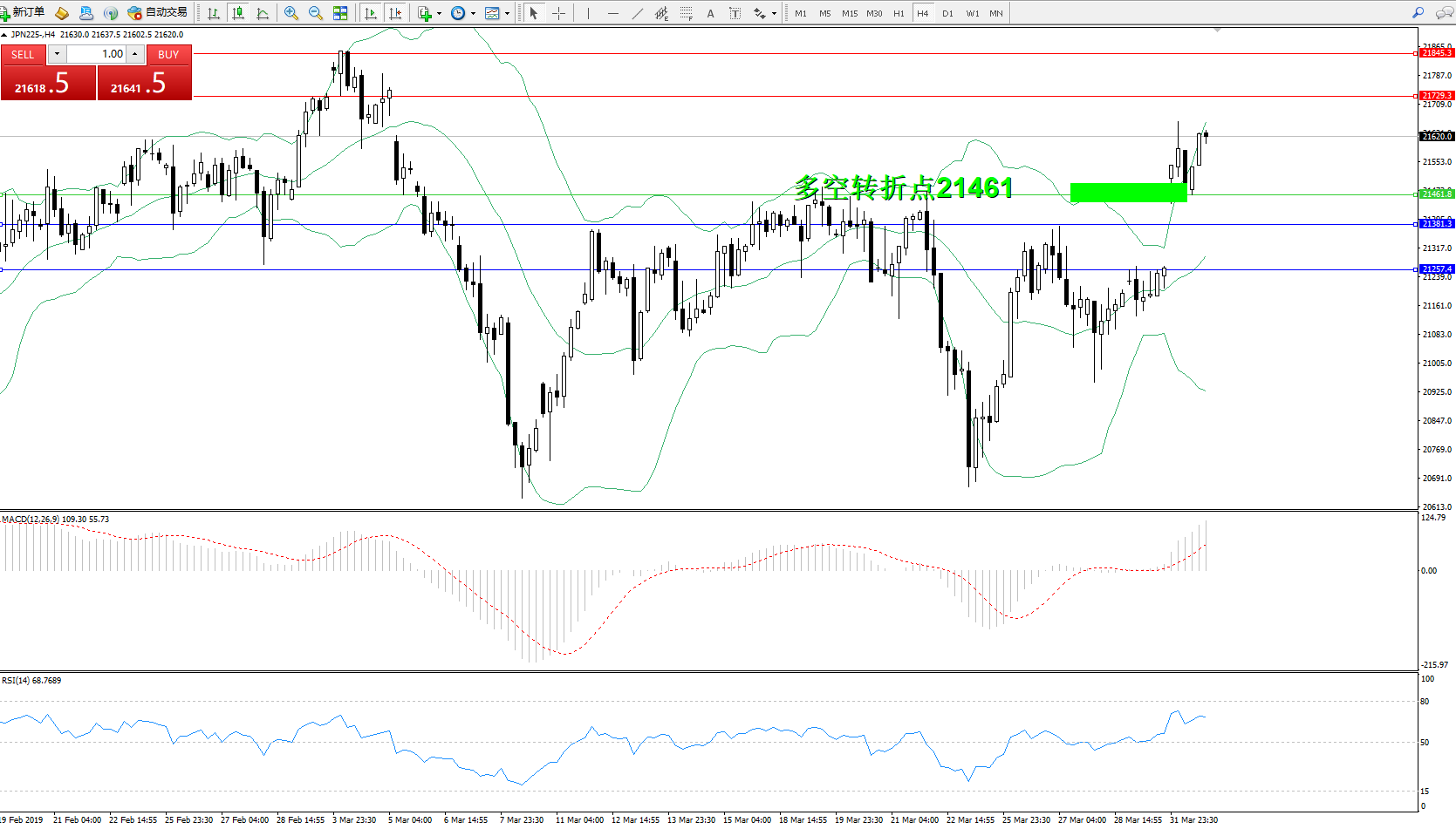 技术点评:多头高开后延续布林线上轨运行,有继续拉升态势,MACD指标多头区域上升态势明显,RSI指标多头区域震荡中;