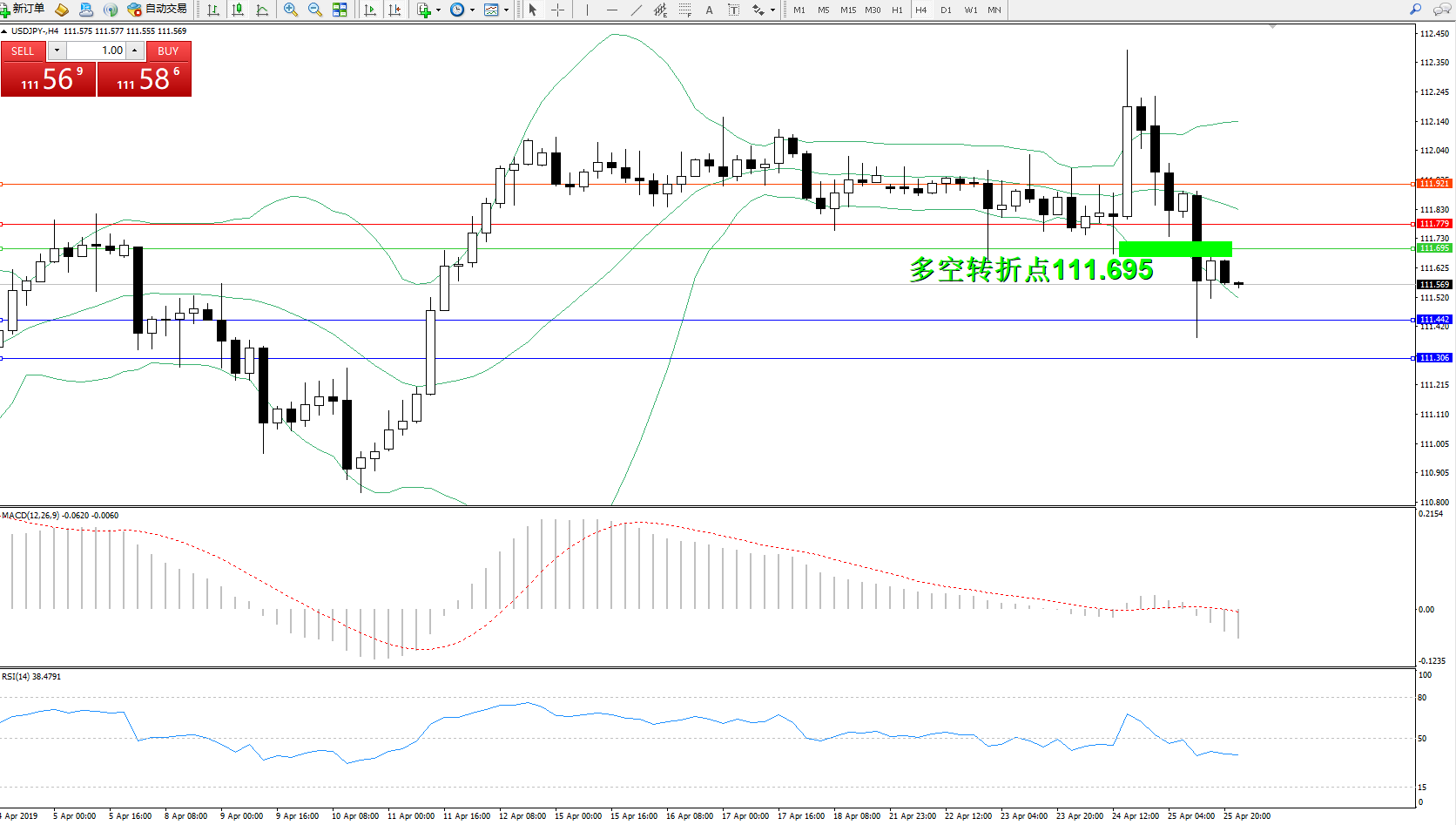交易策略:111.695下方看跌,目标111.442111.306