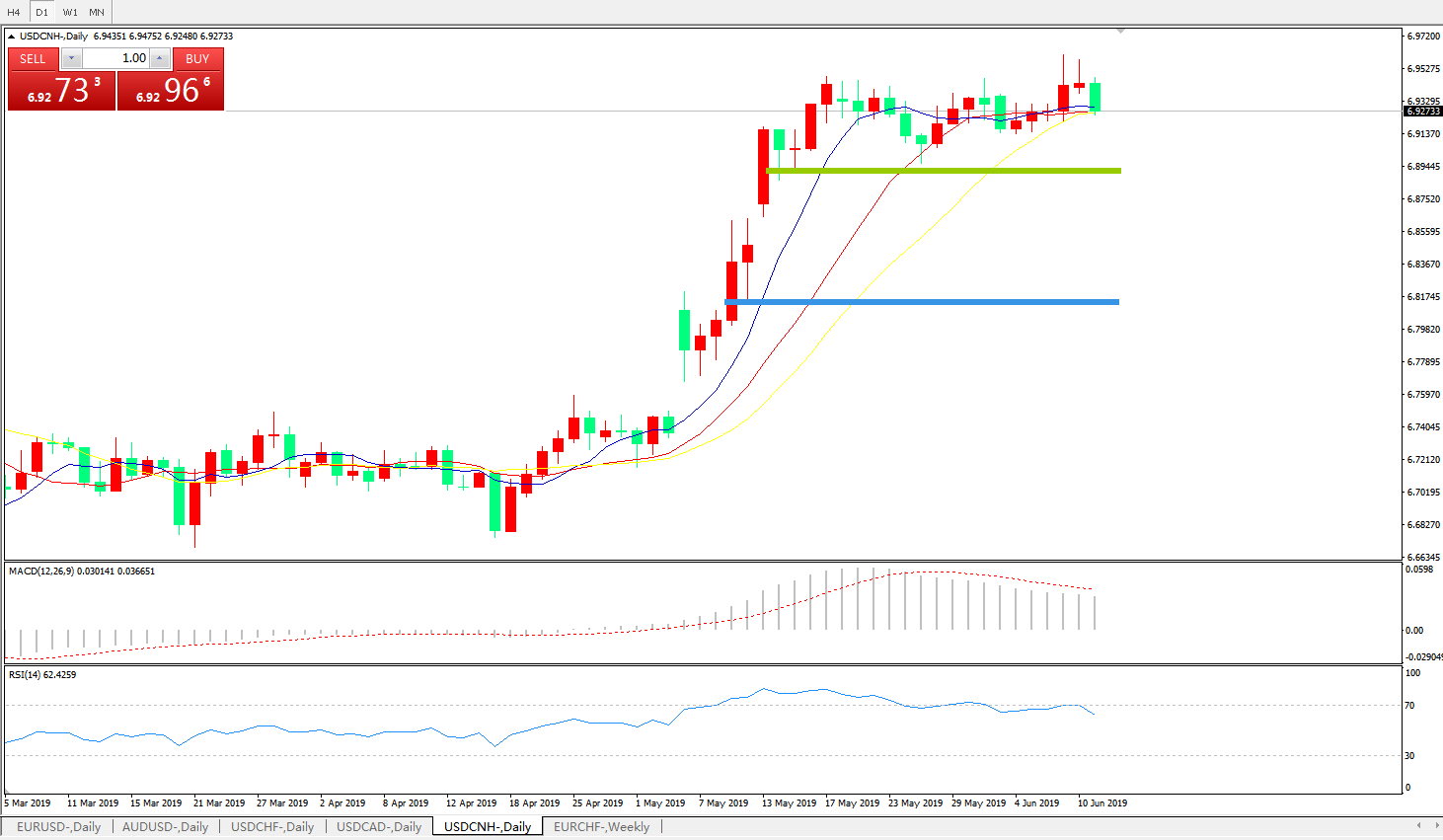 技术面简析:日线均线粘合但整体维持攻势MACD0轴上方运行但动能柱轻微缩量RSI超买区域拐头下行,汇价强力上攻后宽幅强势整理,预计短期汇价有整理回落需求,中期重点关注中美贸易争端后续进展