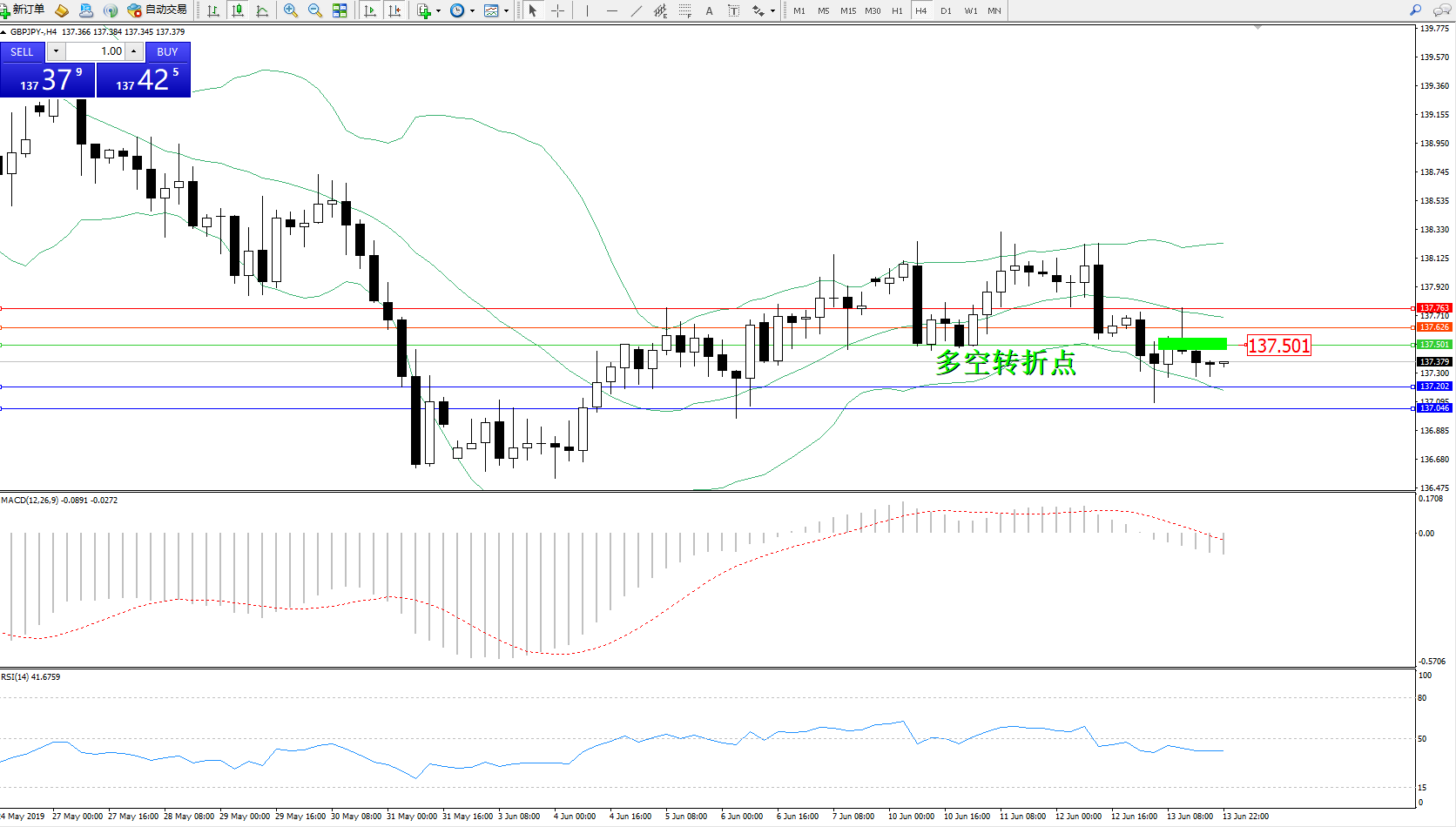 交易策略:137.501下方看跌,目标137.202、137.046