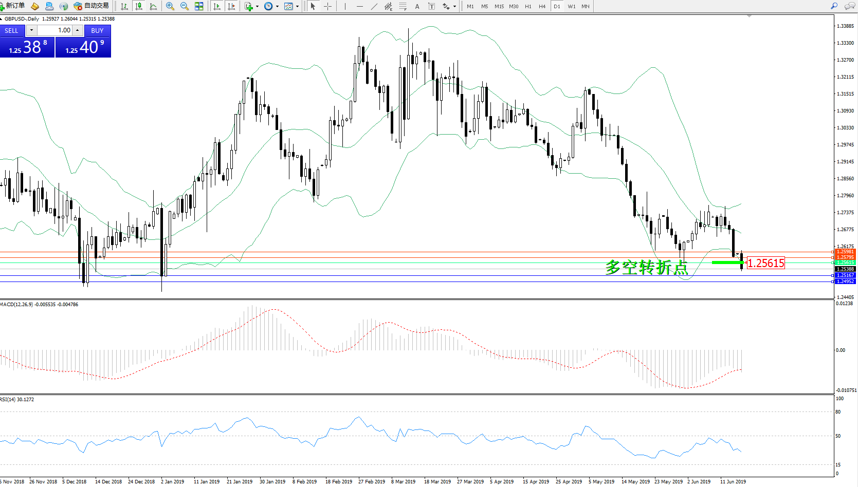 交易策略:1.25615下方看跌,目标1.25167、1.24952