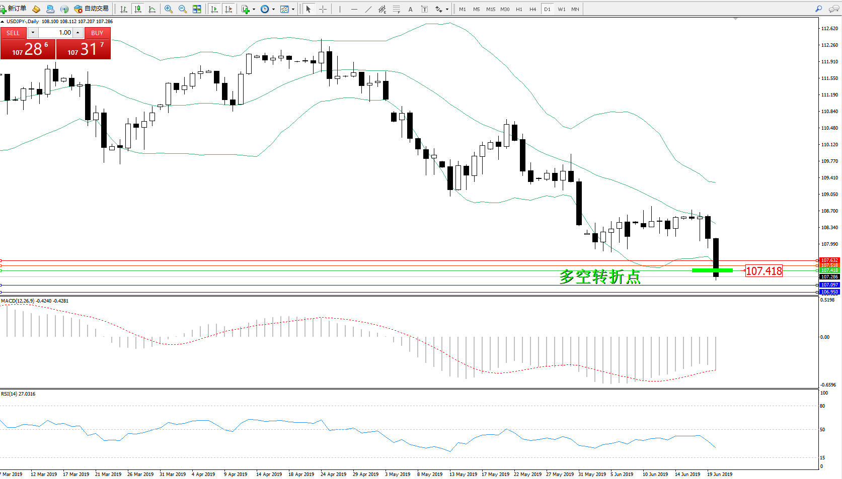 日本央行公布利率决议,维持利率前瞻指引不变,同时强调至少在2020年春季之前维持极低的利率。决议公布后,美元兑日元小幅走弱,逼近早些时候触及的年内低点107.55位置,因市场对于日本央行维持利率不变已经充分消化。对于海外经济,日本央行认为海外经济的下行风险上升,必须关注海外经济体的下档风险对日本企业和家庭信心的影响,出口和产出都显示出疲态。