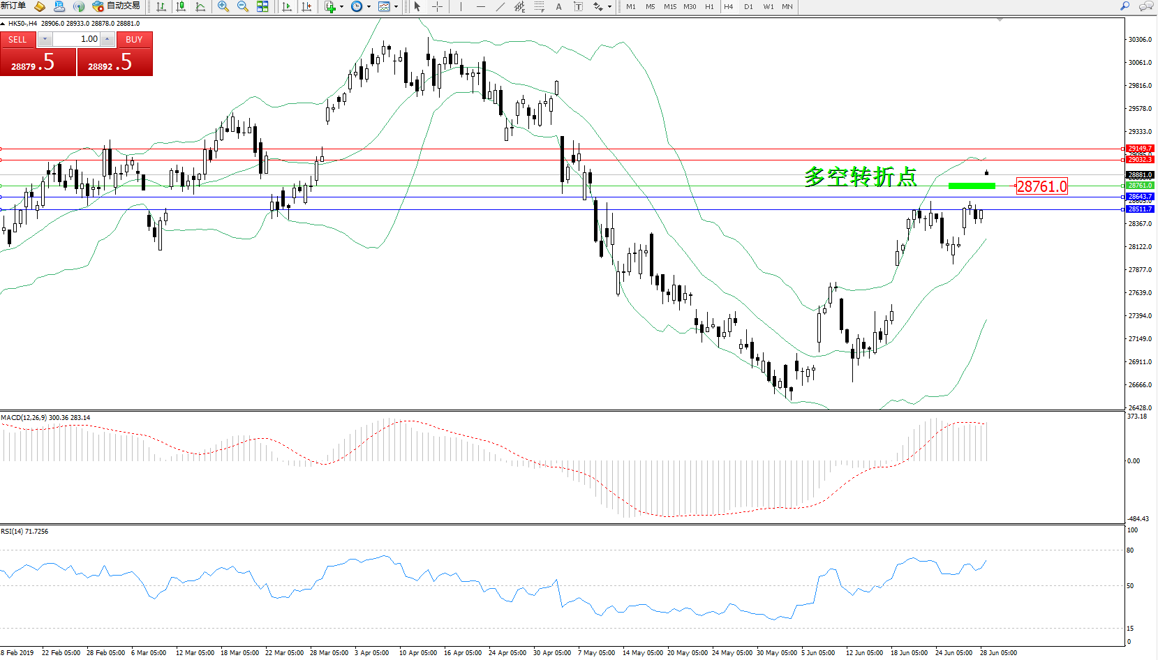 香港恒生指数上交易日收盘下跌78.80点,跌幅0.28%,报28542.62点;在G20峰会上美国和中国同意重启贸易谈判后,风险偏好改善,同时美国放松对华为的限制,提振科技类股。美国总统特朗普与中国国家主席习近平周末会晤后,中国同意购买数量未定的美国农产品,并重回谈判桌。