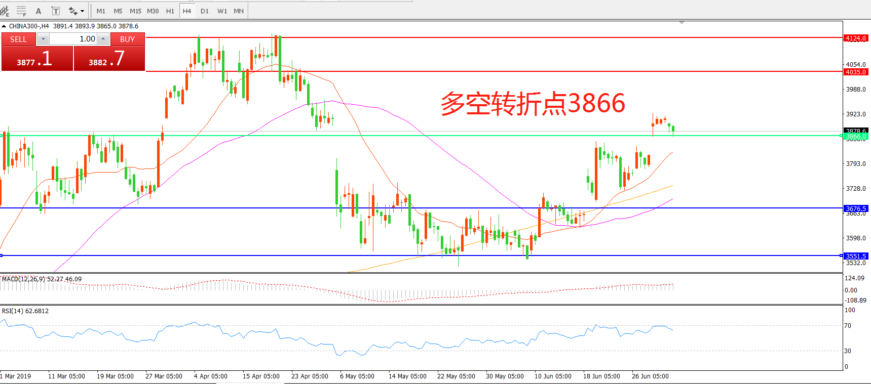 4小时图看,沪深300指数触碰3900附近后震荡回落,但均线系统依然呈现多头排列,MACD红柱增加,RSI指标走平,日内延续震荡上行概率较大。