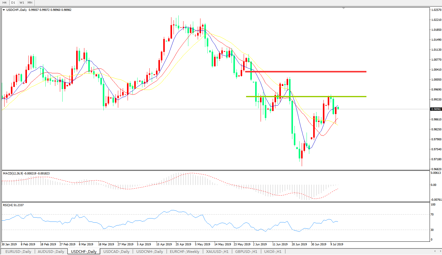 美元兑瑞郎USDCHF 日线图:
