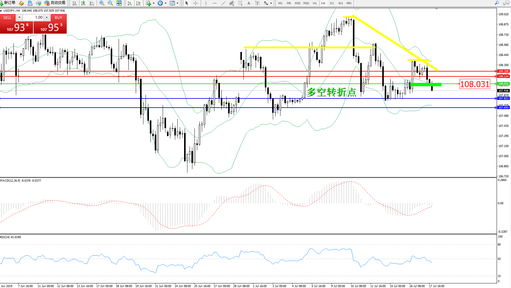 美日高位回撤再次跌破108位置,日本央行行长黑田东彦暗示,如果日本通胀水平此后再度失速,日本央行将不排除进一步强化宽松措施力度。此举令日汇价进一步上行空间受限。此外,美国股市近日表现强劲,本周多家重磅上市公司的二季度财报表现同样好于预期,这进一步遏制了市场避险需求。投资者正在等待美联储月底的下一步政策行动。另外,日本将拒绝韩国就出口限制进行谈判的要求,日韩贸易局势正在进一步恶化。