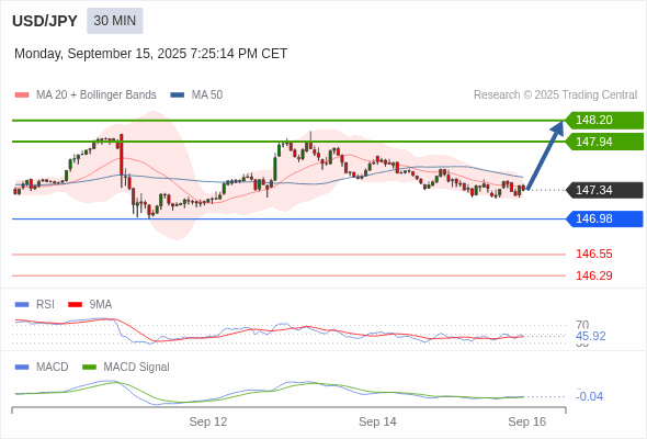 美元/日元 当日内 : 有上涨的可能,目标价位定在 148.20 。