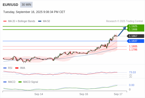 替代方案: 在1.1837以下,期待1.1805和1.1786。