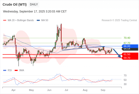 交易策略: 在 66.00 之下,看跌,目标价位为 61.50 ,然后为 59.70 。