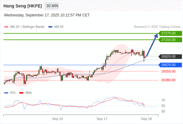 在 26670.00 之上,看涨,目标价位为 27150.00 ,然后为 27270.00 。