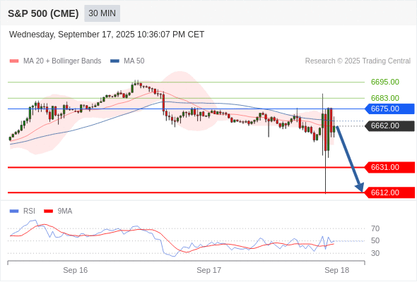 在 6675.00 之下,看跌,目标价位为 6631.00 ,然后为 6612.00 。