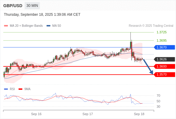 交易策略: 在 1.3670 之下,看跌,目标价位为 1.3600 ,然后为 1.3570 。