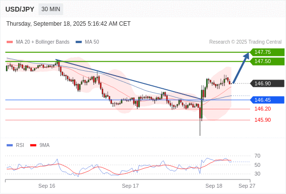 在 146.45 之上,看涨,目标价位为 147.50 ,然后为 147.75 。
