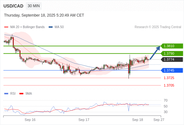 在 1.3745 之上,看涨,目标价位为 1.3790 ,然后为 1.3810 。
