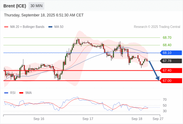 交易策略: 在 68.10 之下,看跌,目标价位为 67.40 ,然后为 67.00 。