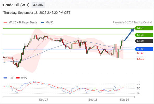 在 63.60 之上,看涨,目标价位为 64.35 ,然后为 64.70 。