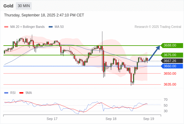在 3660.00 之上,看涨,目标价位为 3675.00 ,然后为 3688.00 。