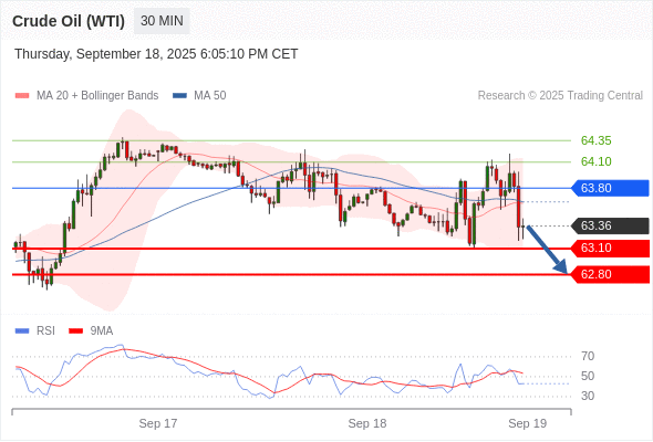 在 63.80 之下,看跌,目标价位为 63.10 ,然后为 62.80 。