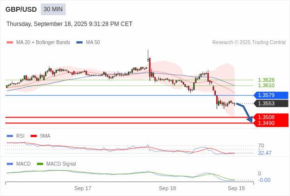 英镑/美元 当日内 : 看跌,在 1.3579 之下。