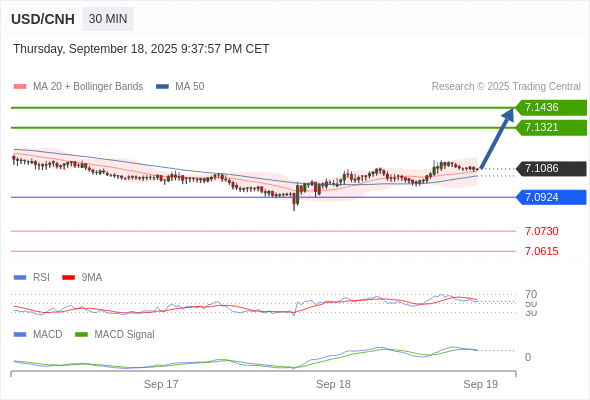美元/人民币 当日内: 看涨,当 7.0924 为支撑位,目标定在7.1436。
