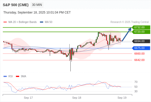在 6675.00 之上,看涨,目标价位为 6720.00 ,然后为 6732.00 。