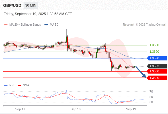 在 1.3590 之下,看跌,目标价位为 1.3530 ,然后为 1.3500 。