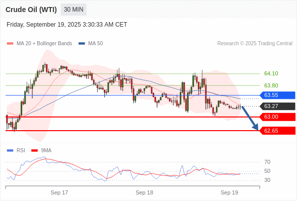 交易策略: 在 63.55 之下,看跌,目标价位为 63.00 ,然后为 62.65 。