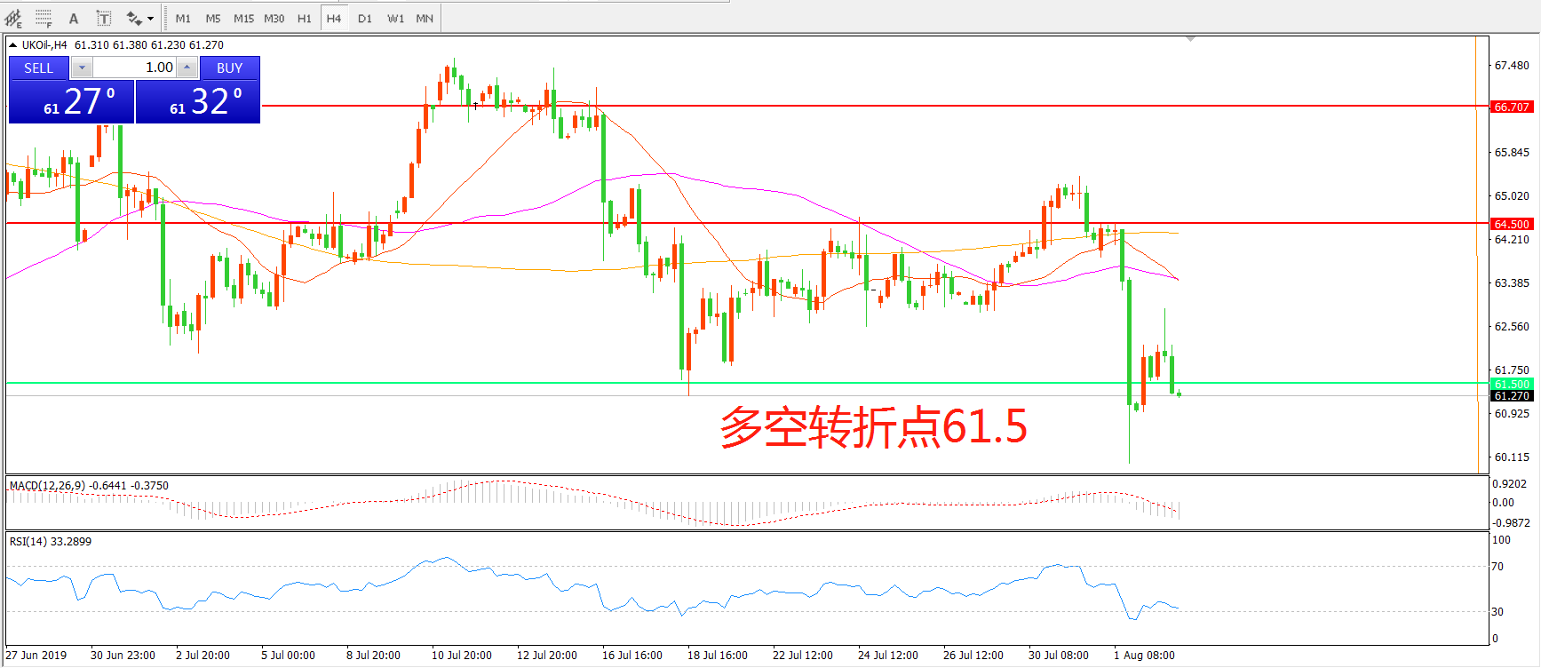 交易策略:在61.50之下看跌,目标57.50 53.50