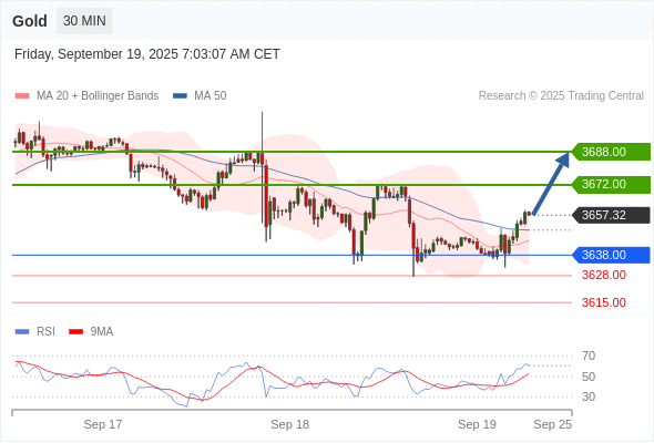 在 3638.00 之上,看涨,目标价位为 3672.00 ,然后为 3688.00 。