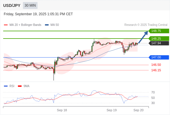 在 147.00 之上,看涨,目标价位为 148.25 ,然后为 148.75 。