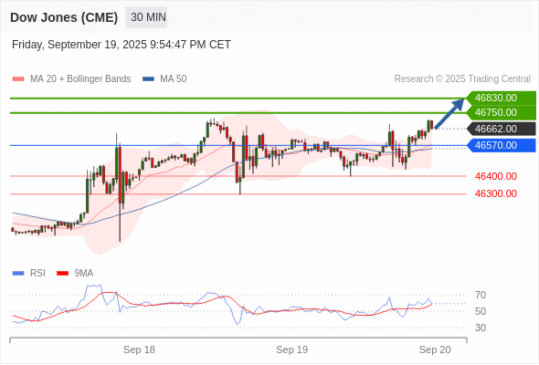 在 46570.00 之上,看涨,目标价位为 46750.00 ,然后为 46830.00 。