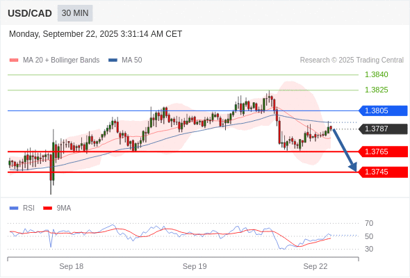 在 1.3805 之下,看跌,目标价位为 1.3765 ,然后为 1.3745 。
