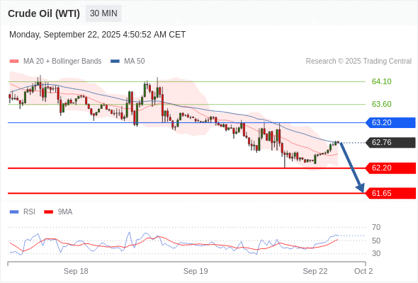 在 63.20 之下,看跌,目标价位为 62.20 ,然后为 61.65 。
