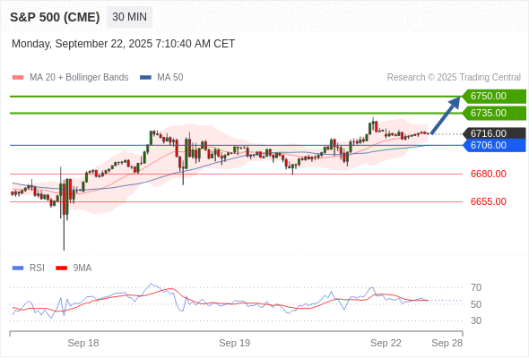 在 6706.00 之上,看涨,目标价位为 6735.00 ,然后为 6750.00 。