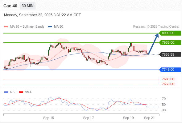 在 7748.00 之上,看涨,目标价位为 7935.00 ,然后为 8000.00 。