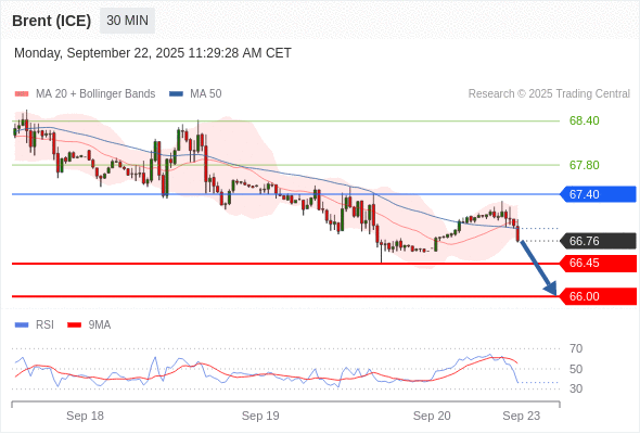 在 67.40 之下,看跌,目标价位为 66.45 ,然后为 66.00 。