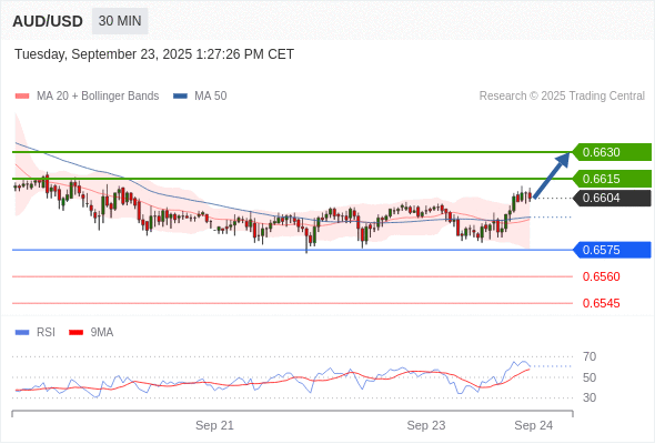 在 0.6575 之上,看涨,目标价位为 0.6615 ,然后为 0.6630 。