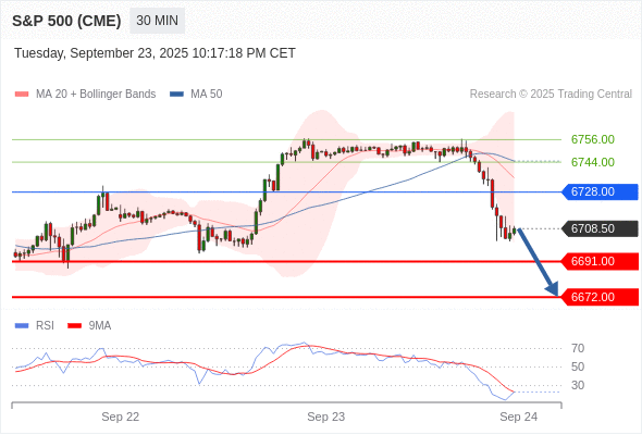 在 6728.00 之下,看跌,目标价位为 6691.00 ,然后为 6672.00 。