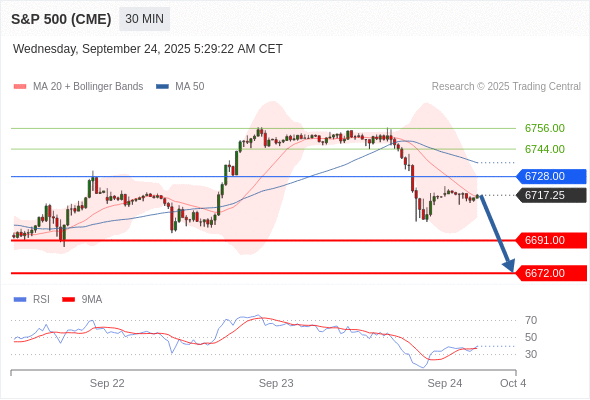在 6728.00 之下,看跌,目标价位为 6691.00 ,然后为 6672.00 。