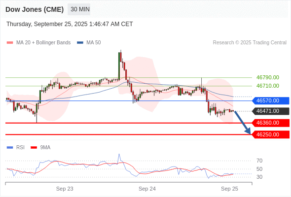 在 46570.00 之下,看跌,目标价位为 46360.00 ,然后为 46250.00 。