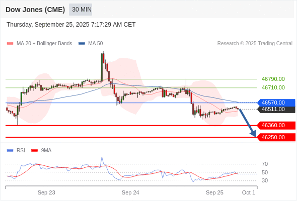 在 46570.00 之下,看跌,目标价位为 46360.00 ,然后为 46250.00 。