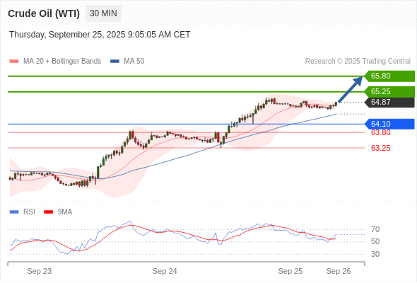 在 64.10 之上,看涨,目标价位为 65.25 ,然后为 65.80 。